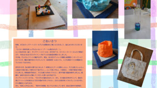 子どもクラス、大人クラスの作品や、制作風景の写真、教室の紹介が展示されます。